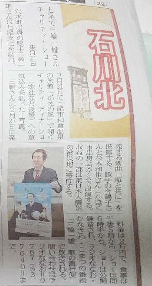 2019年2月14日(木)の北國新聞に掲載していただきました。ありがとうございます。
