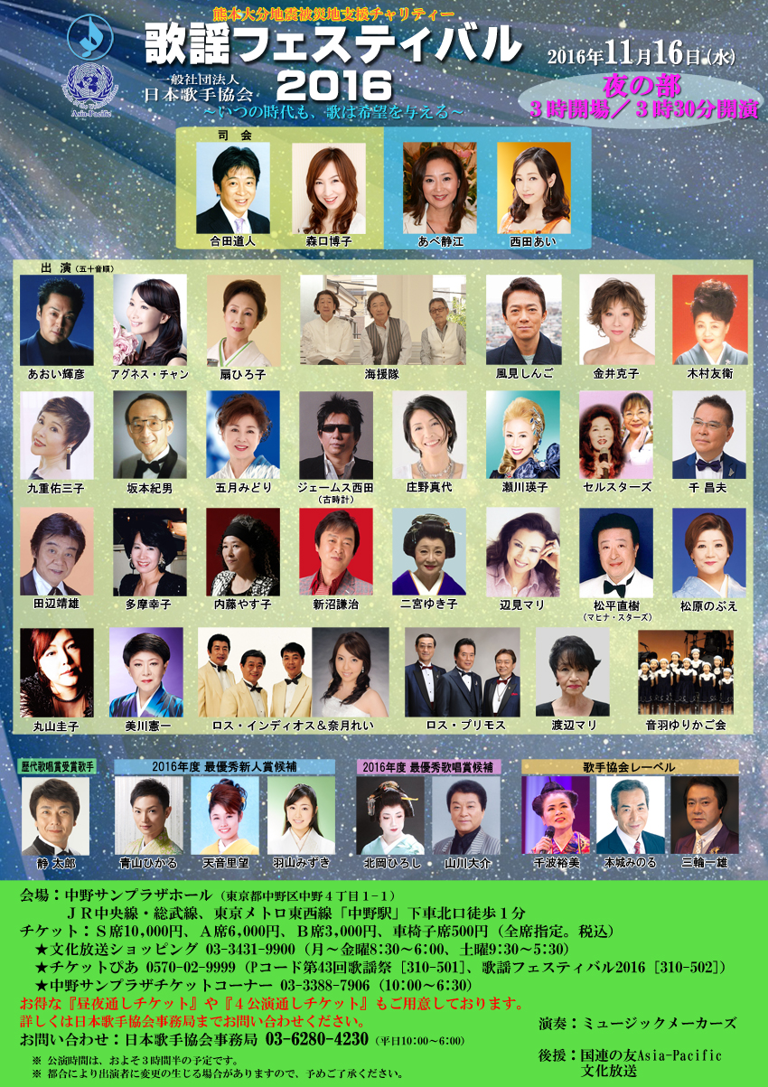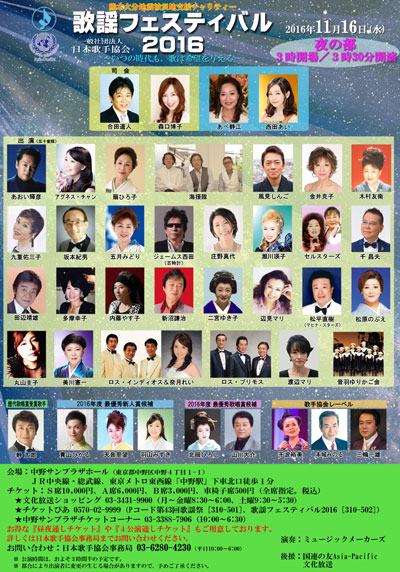 日本歌手協会 秋恒例の「第43回歌謡祭」「歌謡フェスティバル2016」に出演いたしました。
